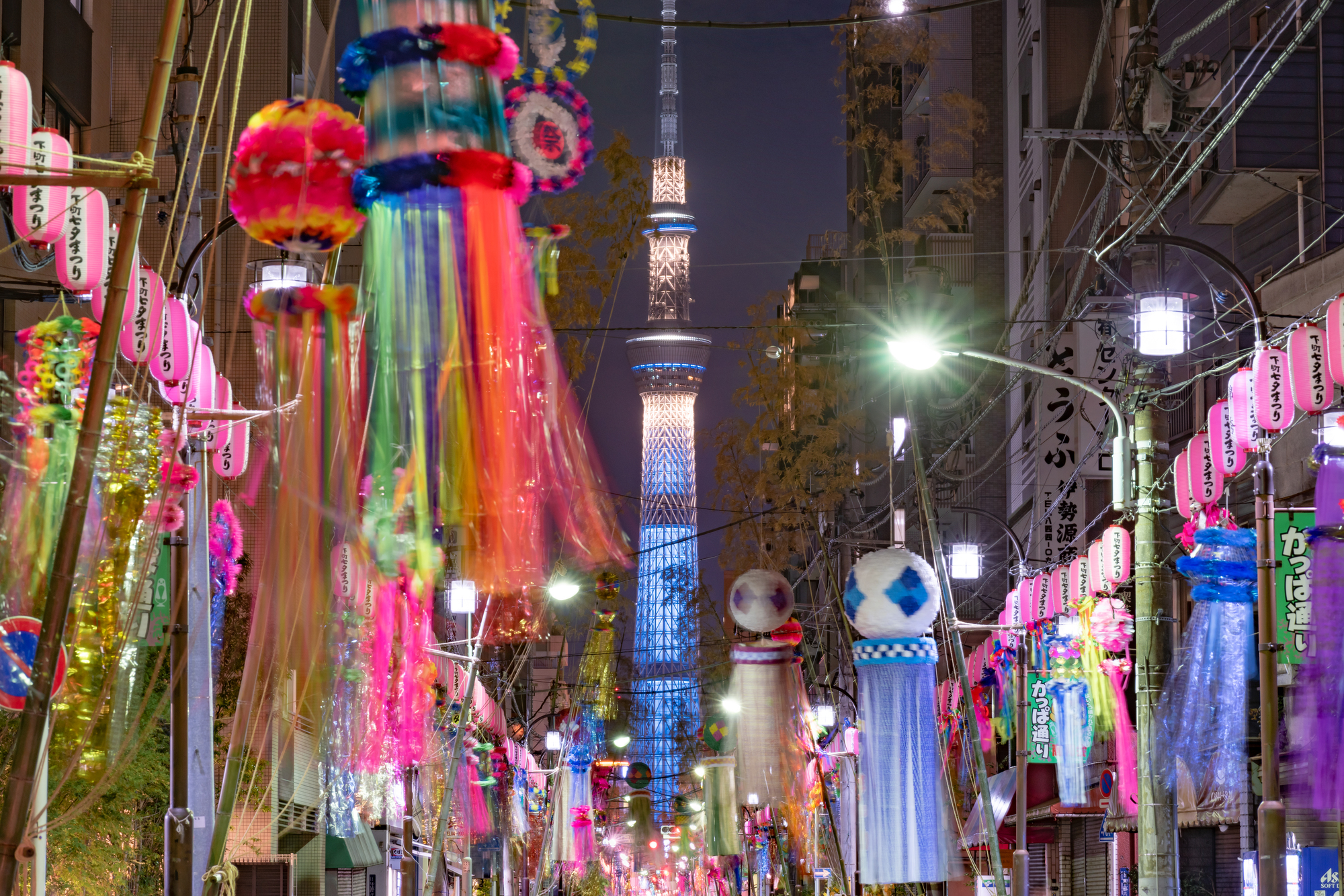 [ he says, but the scene begins to construct itself pretty quickly. an evening sky, not quite nighttime. a long street that seems bare at first, but flourishes with colour and sound as chrono concentrates, lantern-laden stalls and tree branches covered in colourful wish slips. at the end, in the distance, a tower can be seen lit with its lights blinking to life as the sun sets.